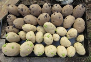 After you have planned and prepared a garden spot with well-drained, loose soil, the seed potatoes can be prepped for planting:
