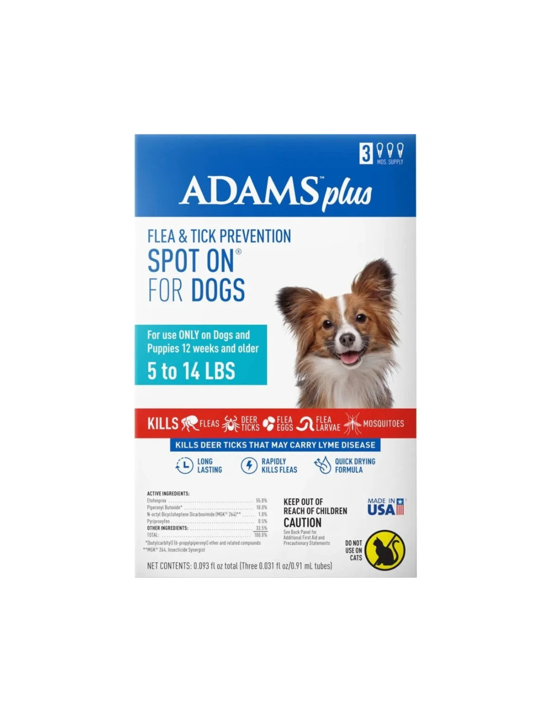 ADAMS+ Flea & Tick Spot On for Dogs Size Small 5-14lb, 3 Month Supply