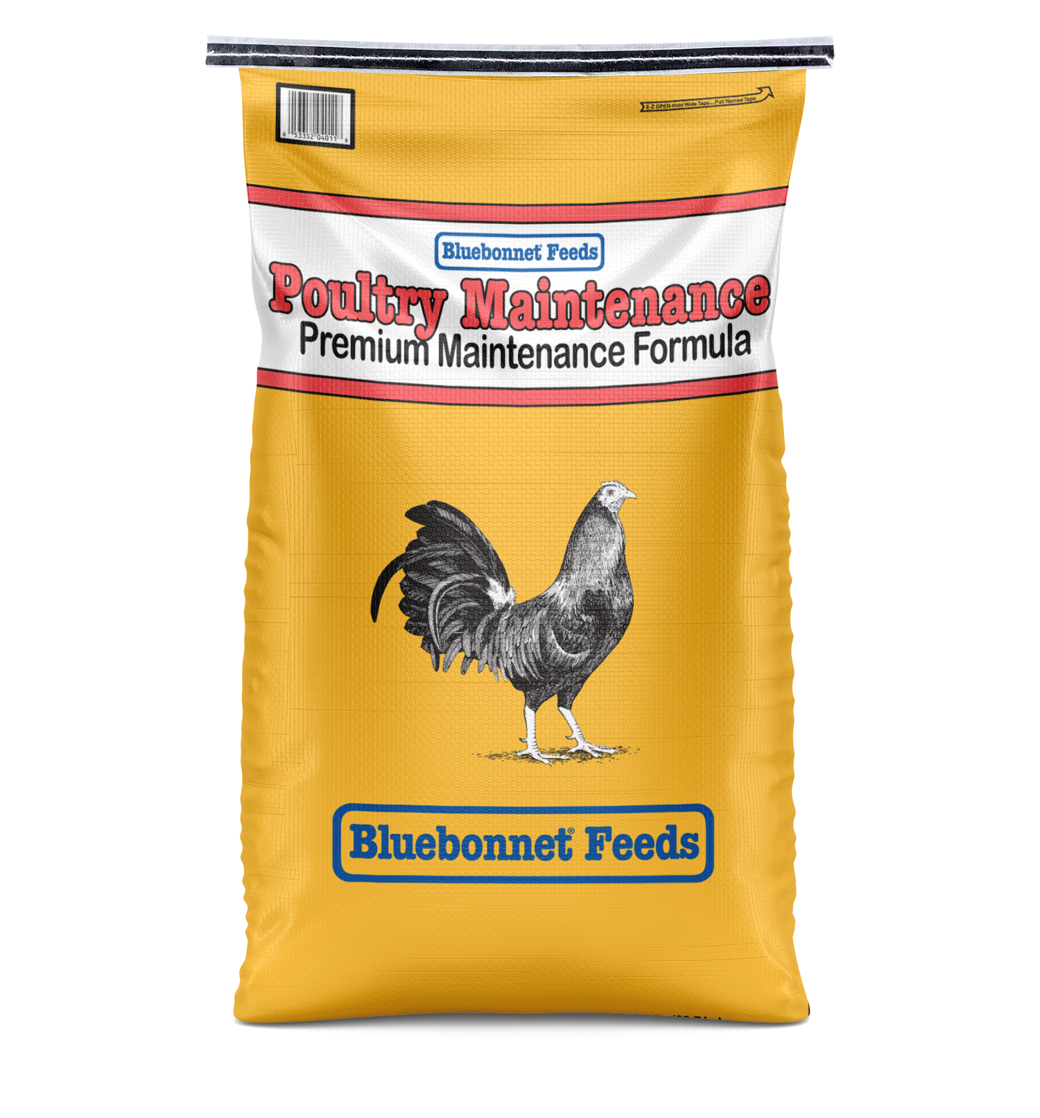 Bluebonnet® Premium Poultry Maintenance is a select combination of high quality grains and other ingredients.  This special ration was formulated to help meet and maintain the nutritional requirements of adult game poultry, show