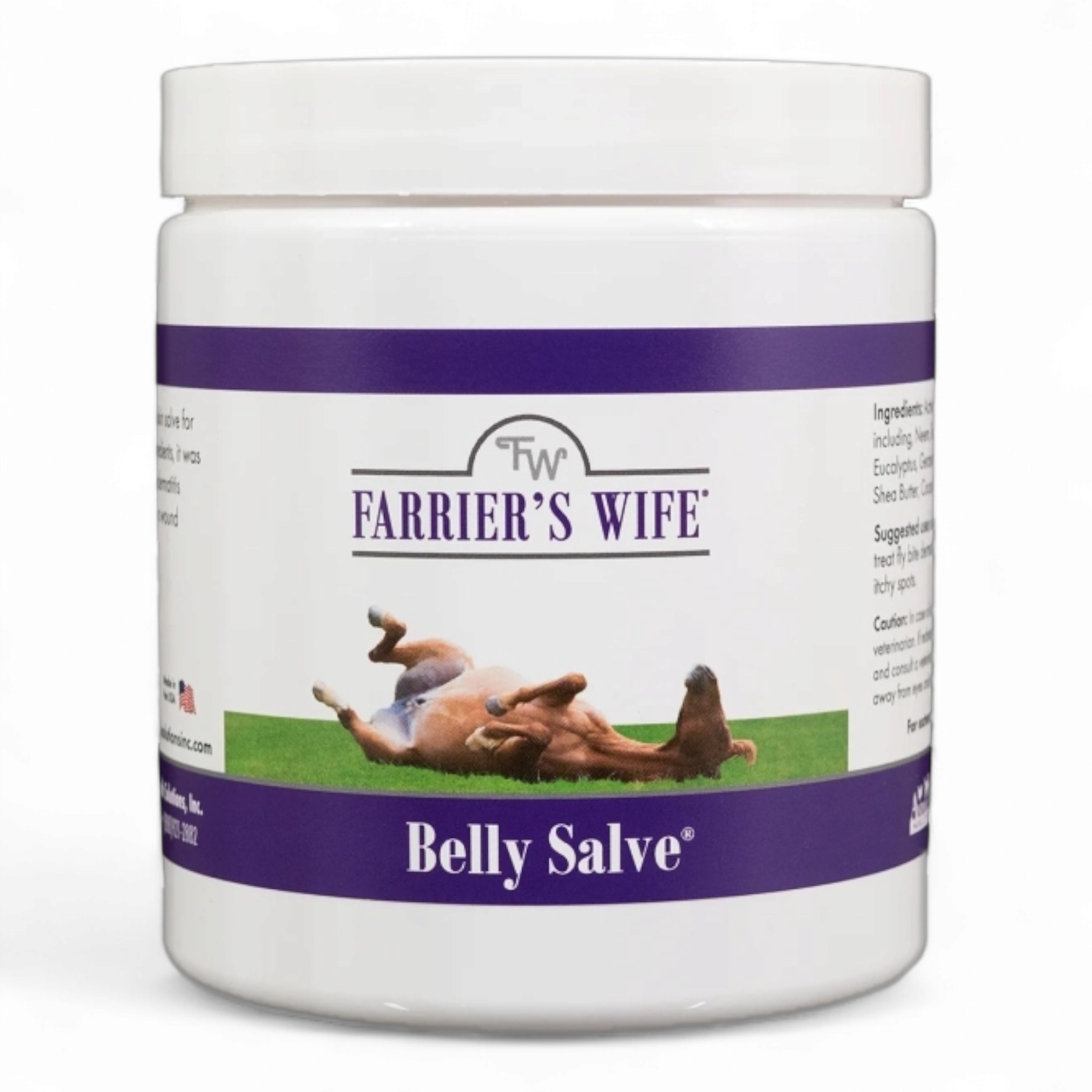 Farrier's Wife Belly Salve® is a soothing blend of natural moisturizers and essential oils designed to treat fly bite dermatitis, sweet itch, etc. in addition to detracting flies and other insects. The unique anti-itch formula soothes and cools,