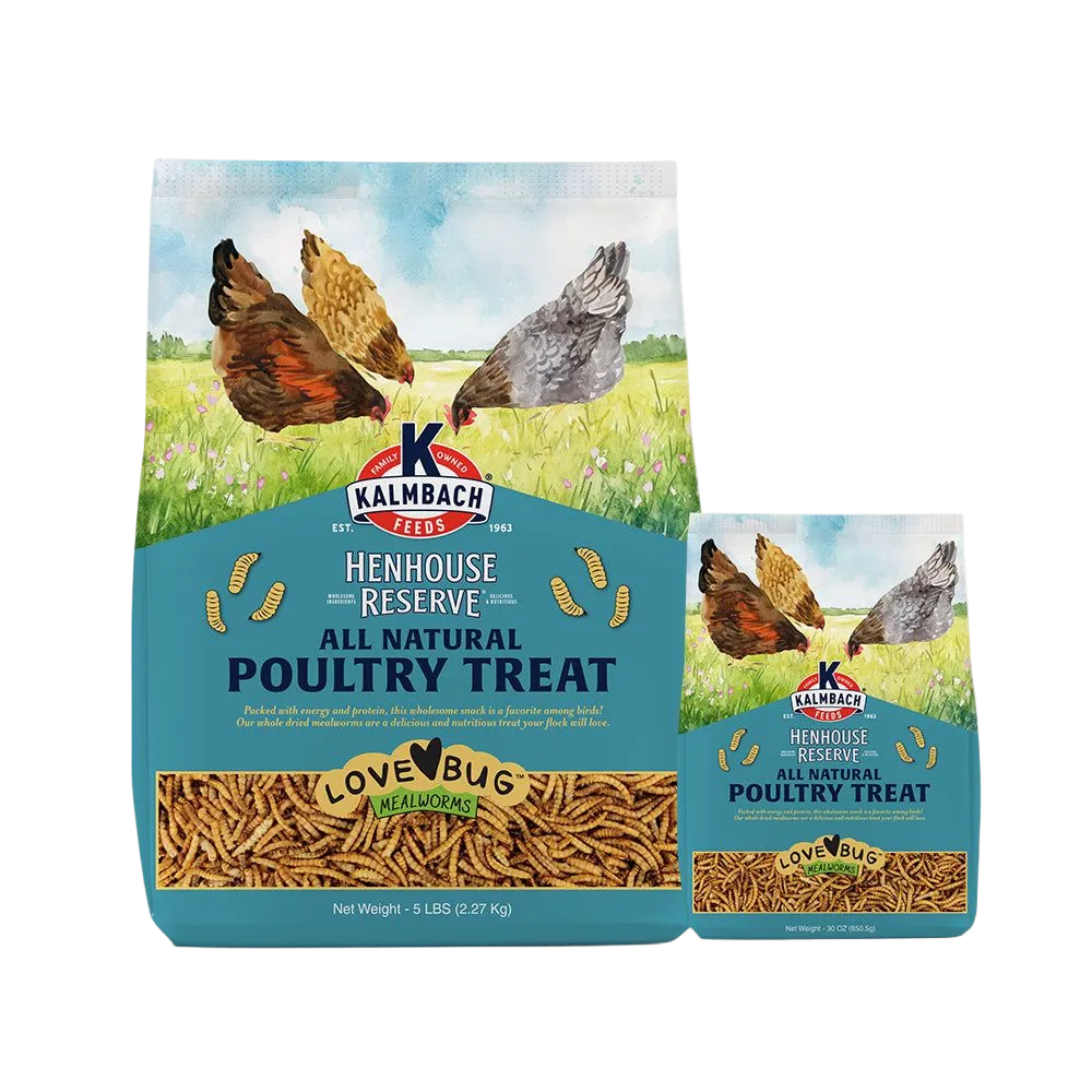 High-protein, nutritious mealworm treats that growing and adult poultry love!