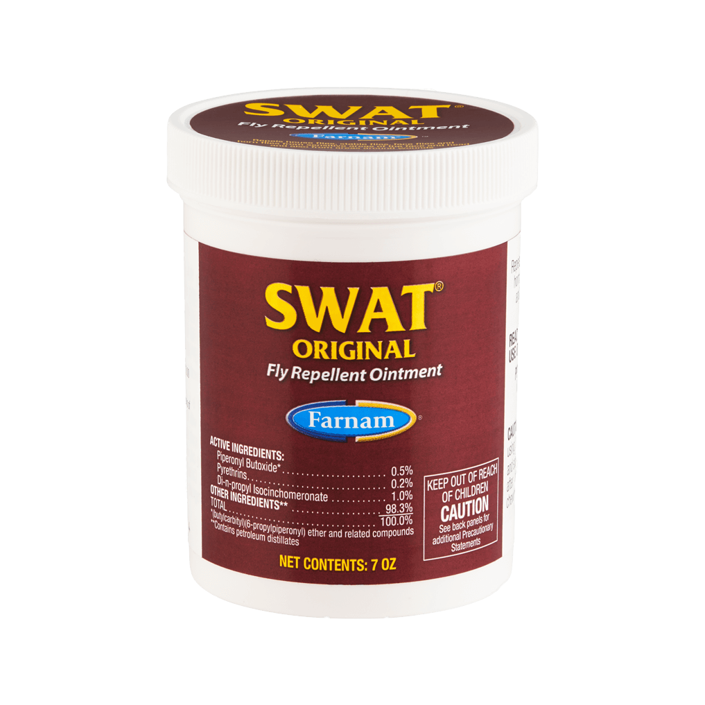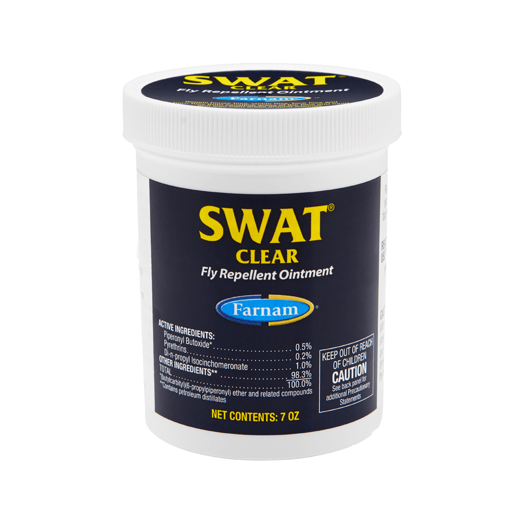 Swat fly repellent ointment for wounds and sores can be used on horses, ponies and dogs. Apply it to existing fly bites and sores to keep flies away while the skin heals. Ideal for use on ears and face. Swat ointment kills flies on contact and k