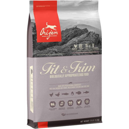 ORIJEN Fit & Trim dog food delivers a diet rich and varied in fresh, whole animal ingredients from free-run chicken and turkey, wild-caught fi...