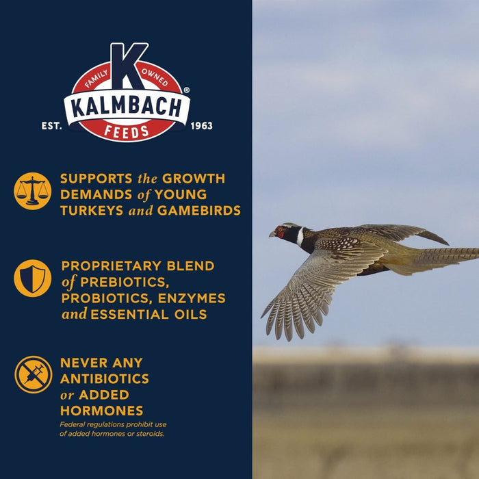 • Made with high quality protein sources to support early growth, muscle development, and feather formulation in young turkeys and gamebirds