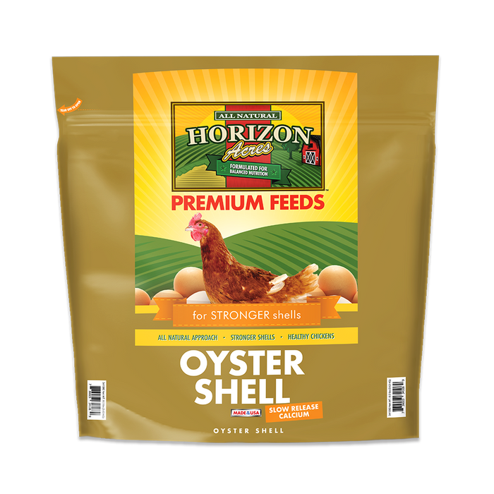 Oyster shell helps strengthen egg shells by providing calcium when the bird needs it most. Although our Horizon Acres Layer Pellets & Crumbles contain calcium, it is sometimes necessary to feed a little extra. It can be fed periodically as a supplement, free choice, Horizon Acres offers Oyster Shell in a convenient 8lb jug.