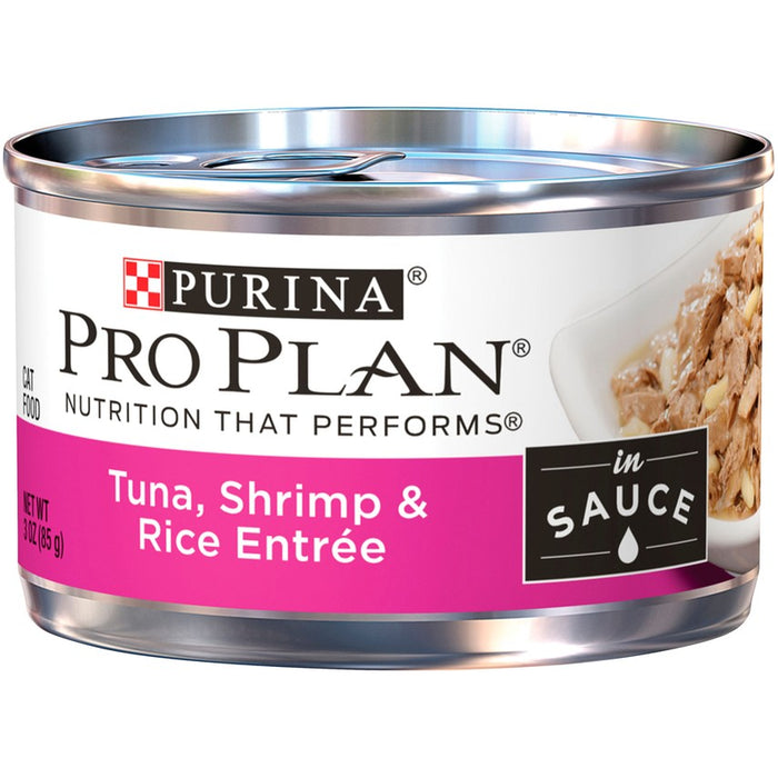 - Twenty-Four (24) 3 oz. Pull-Top Cans - Purina Pro Plan Tuna, Shrimp & Rice Entree in Sauce Adult Wet Cat Food