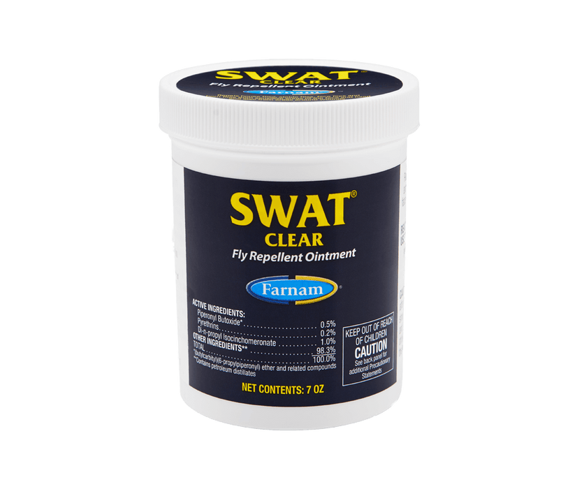 Swat fly repellent ointment for wounds and sores can be used on horses, ponies and dogs. Apply it to existing fly bites and sores to keep flies away while the skin heals. Ideal for use on ears and face. Swat ointment kills flies on contact and keeps them from messing with wounds while its healing properties help wounds heal faster.