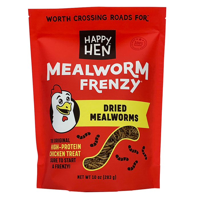 Contains natural dried mealworms that chickens absolutely love to eat. Dried mealworms offer chickens the taste they love without the inconvenience of storing and handling live worms.