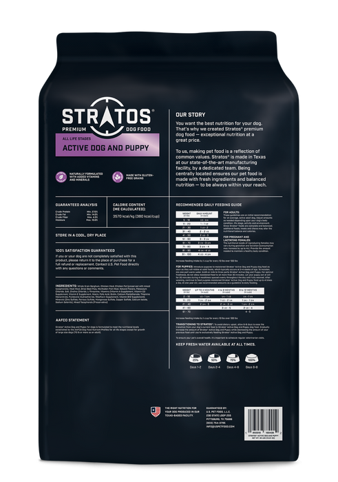 Stratos® Active Dog and Puppy delivers the energy and nutrients that sporting and working dogs, growing puppies and pregnant or lactating adult females need for endurance and overall health.