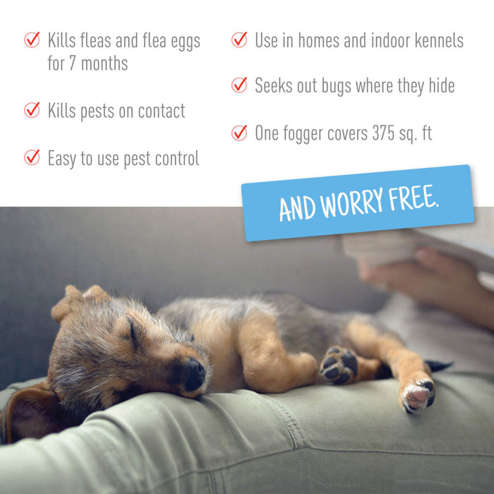 Adams Flea & Tick Indoor Fogger seeks out bugs where they hide in carpets, drapes, upholstery, and more areas in the home. It kills fleas, flea eggs, mosquitoes, cockroaches, flies, spiders, and more insects on contact and provides 7 months of flea protection. This fogger covers 375 square feet and leaves no oily residue or unpleasant odor. It's an economical, do-it-yourself pest control that's easy-to-use and leaves no mess.