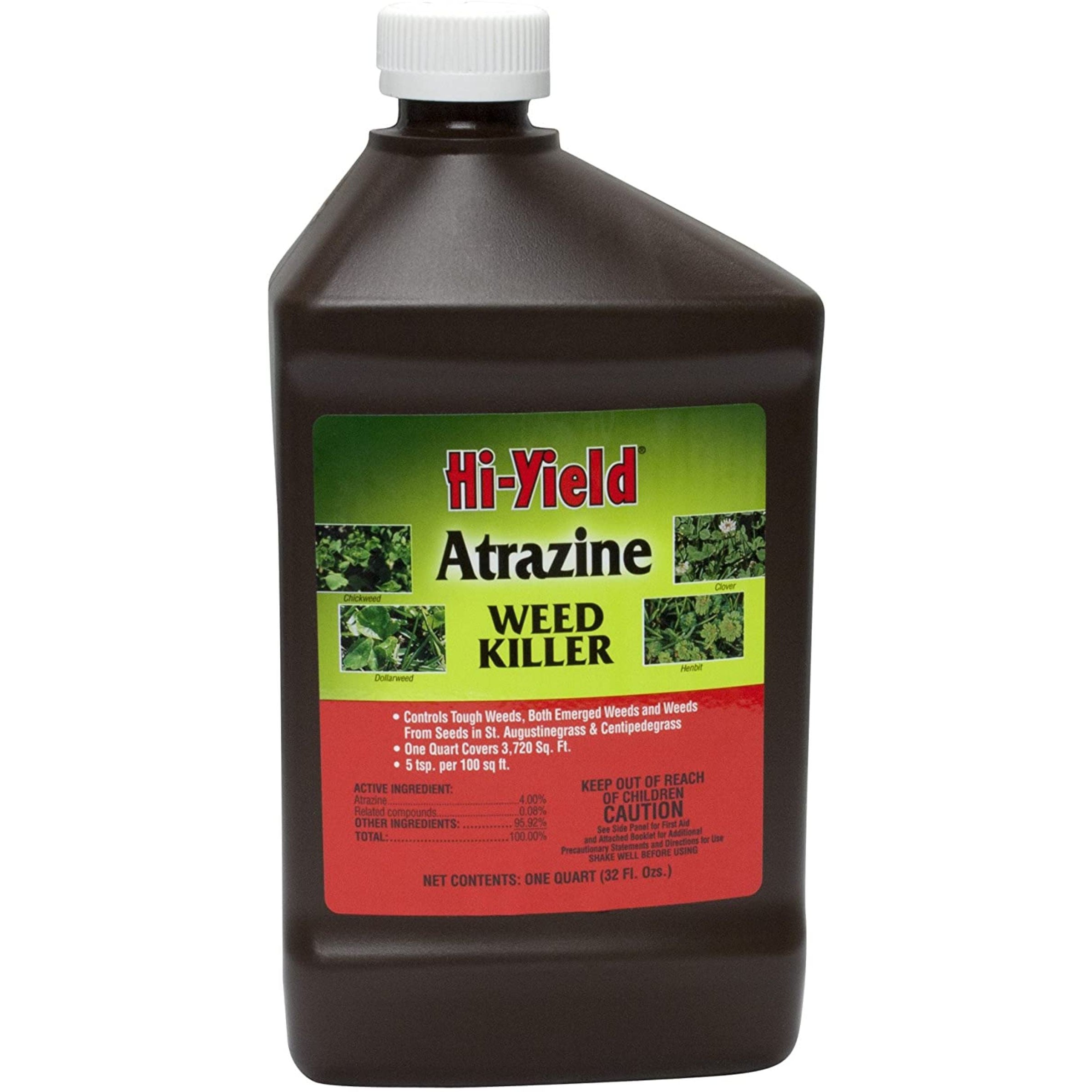 Hi-Yield Atrazine Weed Killer controls Henbit, Dollarweed, Chickweed, Clover, Sandspur and others listed on label. Hi-Yield Atrazine Weed Killer controls both emerged weeds and weeds from seed in St. Augustine and Centipedegrass. Hi-Yield Atrazin