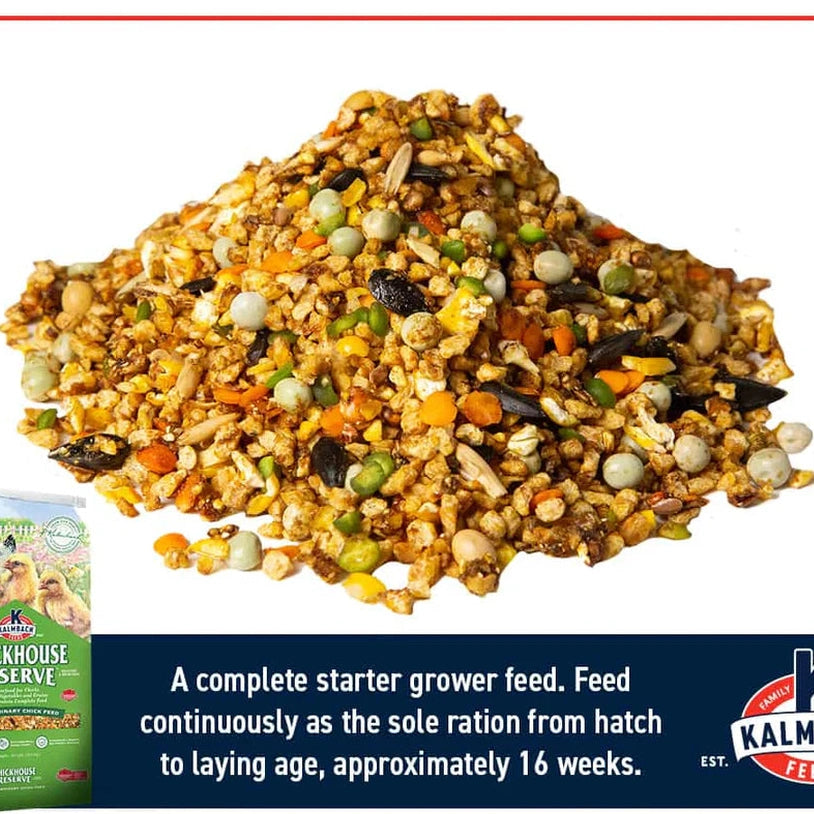 A complete starter/grower chick feed made with whole seeds, vegetables and grains. Chickhouse Reserve® is formulated to meet all the nutritional requirements of your chicks!