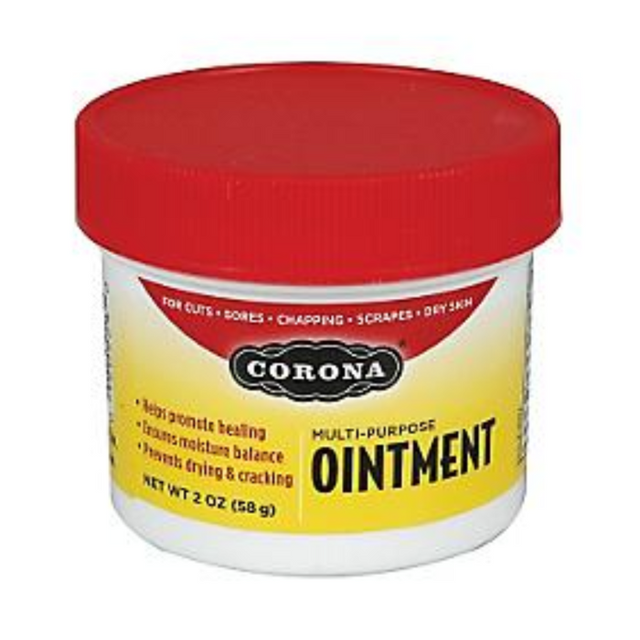 For over 100 years, Corona Ointment has been protecting skin and helping to promote the natural healing of minor cuts, sores, burns, chapping, and dry skin. Corona Ointment has been a staple in horse wound care kits for years and works so well that no barn should be without it!