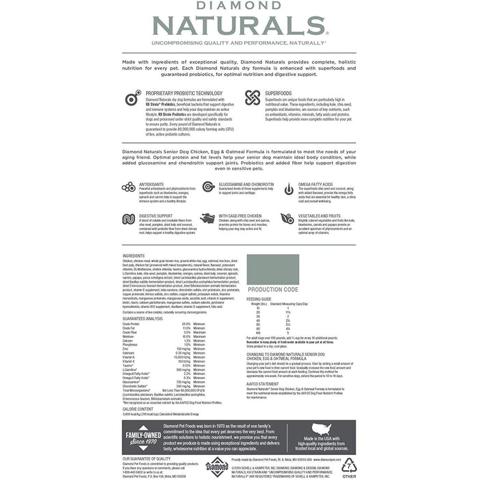 Diamond Naturals Senior Dog Chicken, Egg, & Oatmeal 35lb