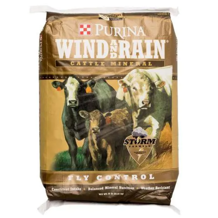 - Wind and Rain Storm Texas All Season Complete beef cattle minerals designed to correct mineral deficiencies of the available forage in a highly, palatable, weather-resistant, granular formula that includes Wind and Rain Fly Control with Altosid (IGR) for the prevention of breeding of horn flies in the manure of treated cattle.