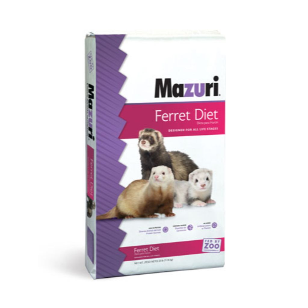 Mazuri Ferret Diet offers proper ferret nutrition in an extruded form for all life stages of ferrets. This highly palatable, nutrient-dense dry ferret food contains multiple animal derived proteins appropriate for carnivores. Mazuri® ferret food
