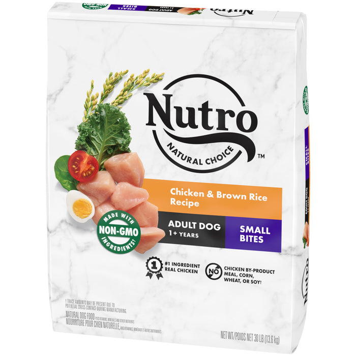 Give your pet the wholesome ingredients they love with NUTRO™ NATURAL CHOICE™ Dry Dog Food recipes. Made for dogs ages 1 and older, this dry food provides small bites for dogs that prefer smaller kibble. It helps support healthy immunity with essential antioxidants and it provides natural fiber for healthy digestion. As part of the NUTRO™ FEED CLEAN™ philosophy, this delicious chicken and brown rice recipe starts with a high-quality protein source as the 1st ingredient and is made with real, recognizable ingredients sourced from trusted farmers and suppliers. Plus, it's made with non-GMO ingredients* and has no chicken by-product meal, corn, wheat, or soy*. So you can feel good feeding your dog recipes that are rich in nutrients and full of flavor.