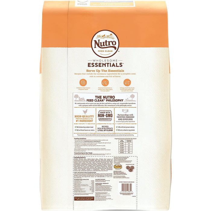 • Contains one (1) 30 lb. bag of NUTRO WHOLESOME ESSENTIALS Natural Senior Dry Dog Food Farm-Raised Chicken, Brown Rice & Sweet Potato Recipe; Natural Dog Food Plus Vitamins, Minerals and Other Nutrients
