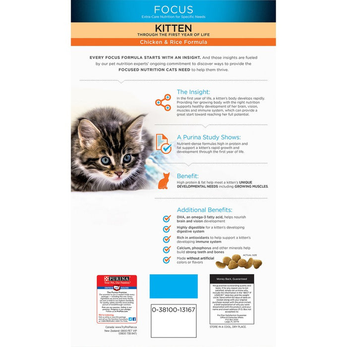 - Purina Pro Plan FOCUS Chicken & Rice Formula Dry Kitten Food