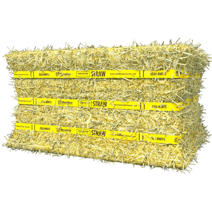 Standlee Premium Products Straw is used for animal bedding, erosion control and composting. Straw is not recommended for equine bedding as horses may consume it causing digestive problems. Standlee Premium Products Certified Straw Compressed Bales are easy to handle and convenient for storing. Straw bales are approximately 18 cu. ft. expanded and Certified Noxious Weed Free.